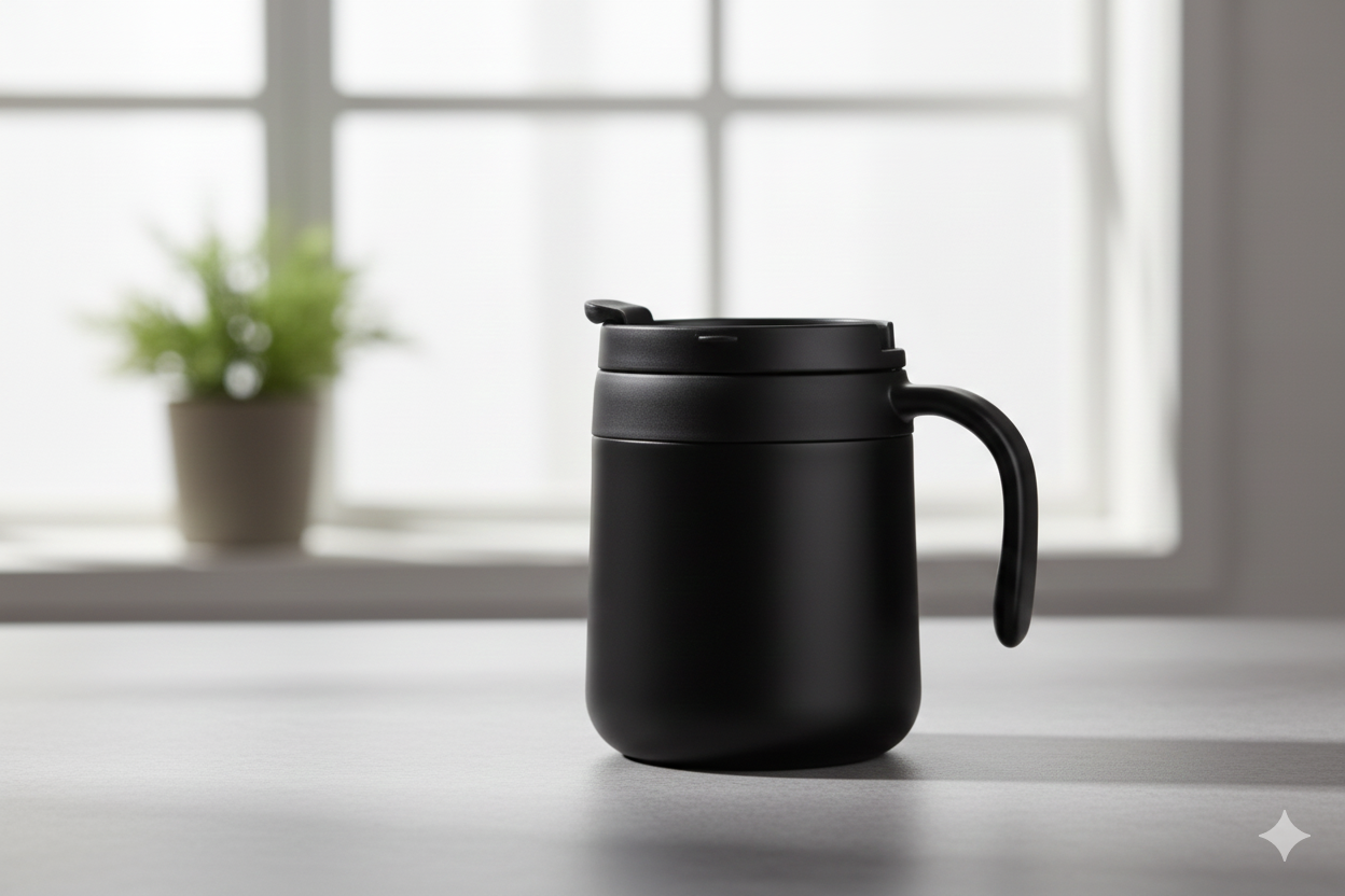 The compact black design makes it perfect for commuting, office use, or travel, while the ergonomic handle provides comfortable and secure carrying. The tight-seal lid includes an easy-open drinking flap that prevents leaks and spills during movement.