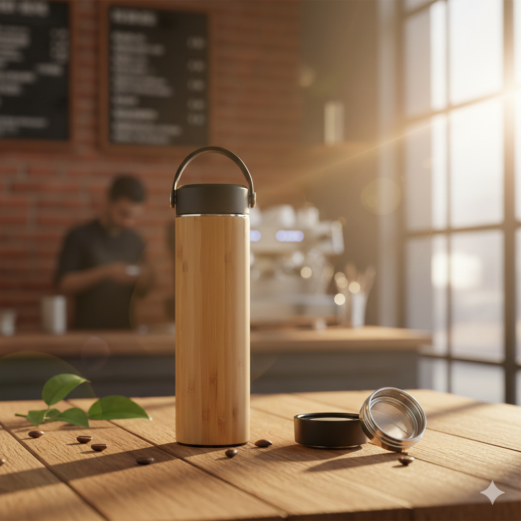 Introducing BAMBOO ESSENCE, your everyday thermal mug crafted to combine elegance, durability, and practical functionality. Featuring a natural bamboo exterior and high-quality stainless steel interior, it provides advanced thermal insulation to keep your drinks hot or cold for hours.