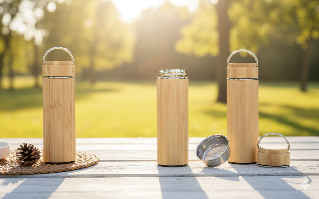 The bamboo lid and handle provide secure closure, ease of use, and eco-conscious support by reducing plastic usage.