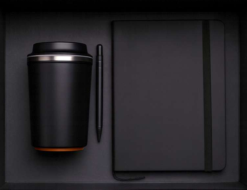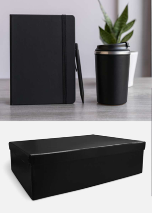 Make every moment more elegant with this Luxury Business Gift Set — a sophisticated trio that blends functionality with timeless design. The set includes a black thermal mug that keeps beverages at the perfect temperature, a premium black notebook for organized notes, and a sleek black pen for smooth, effortless writing.