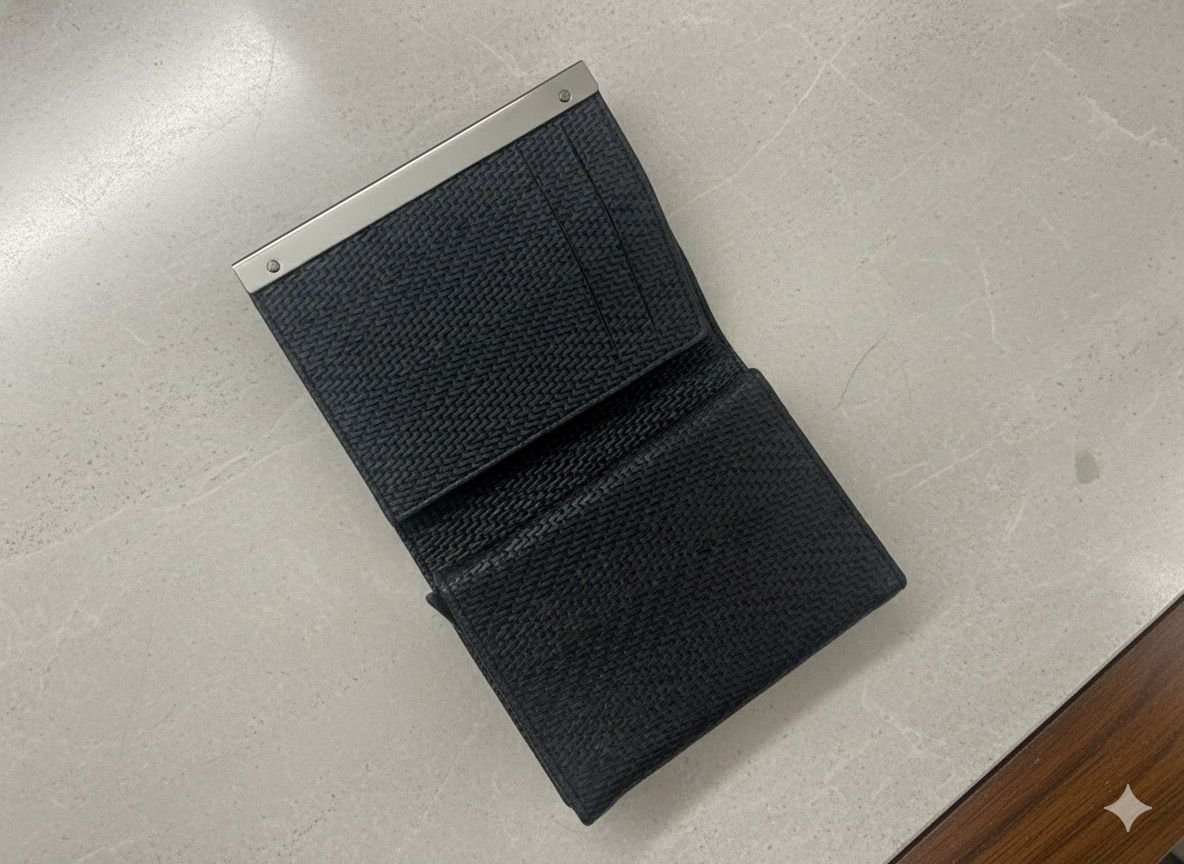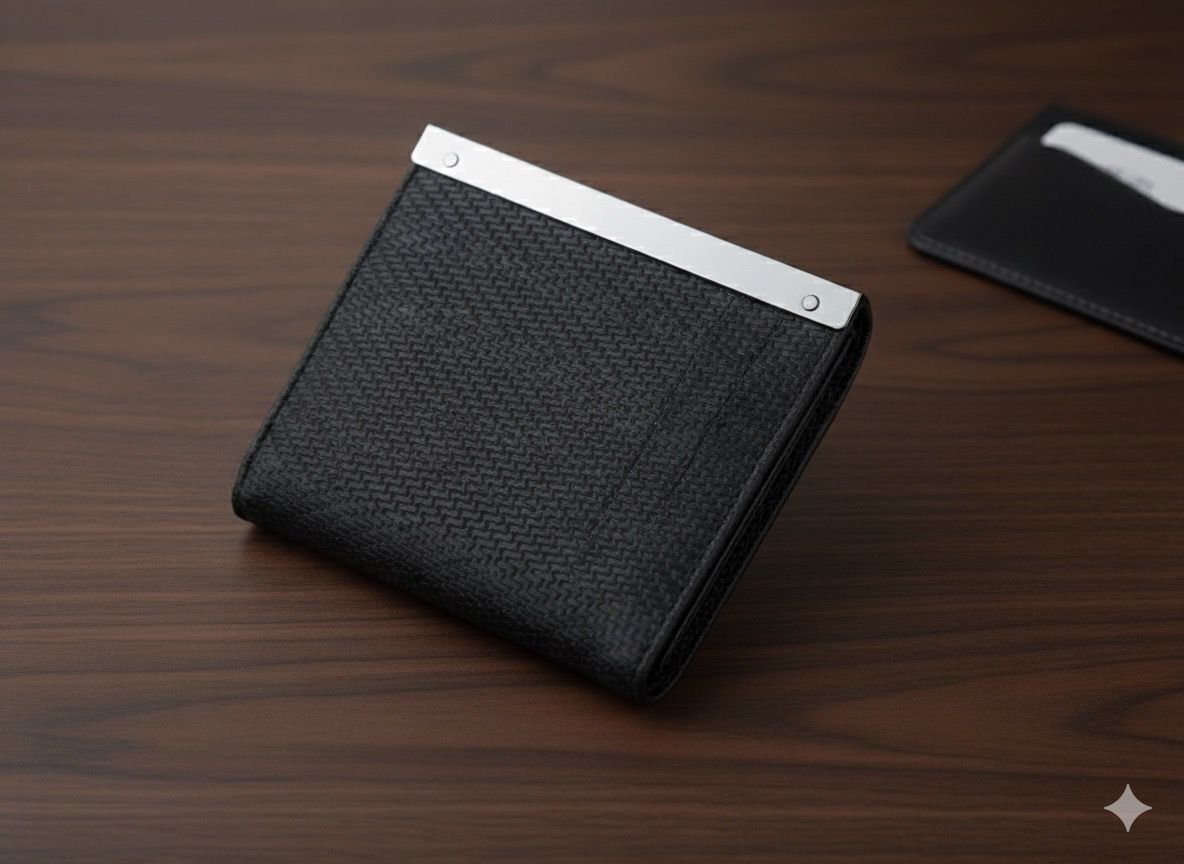 Keep your essentials organized and within easy reach with this Elegant Textured Black Card Holder, designed for those who appreciate simplicity, sophistication, and functionality. Its woven-texture surface offers a premium feel and enhanced grip, while the polished silver metal strip adds a touch of refinement and strength. With multiple interior slots, it ensures your cards stay neatly arranged and protected. Whether for daily errands, travel, or business meetings, this slim and durable card holder is your perfect modern companion.