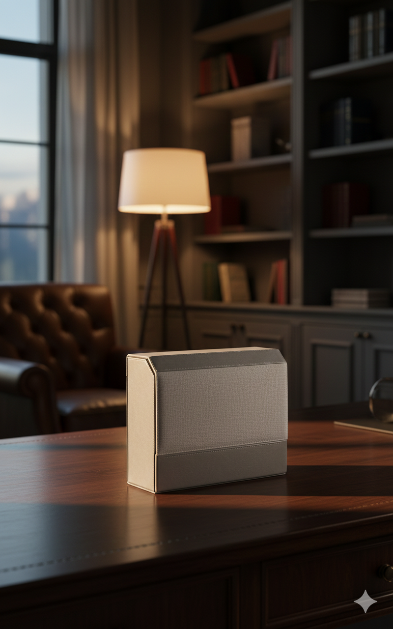 The Gray Cement stand gift box represents the next generation of luxury gift and packaging solutions. Designed to showcase your gifts with strength and elegance, its modern vertical structure makes it stand out as both a packaging piece and a decorative office item.