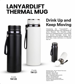 Elevate your hydration routine with the LANYARDLIFT Thermal Mug. Designed for on-the-go lifestyles, this 500ml insulated bottle features a practical integrated lanyard, allowing you to carry or attach it effortlessly during workouts, commutes, or outdoor adventures. Made from premium 18/8 stainless steel, it delivers superior thermal performance, keeping your beverages hot for up to 12 hours or cold for up to 24 hours. Its durable, leak-proof construction ensures peace of mind during daily use. Available in sleek black or white, it combines functionality with modern style.