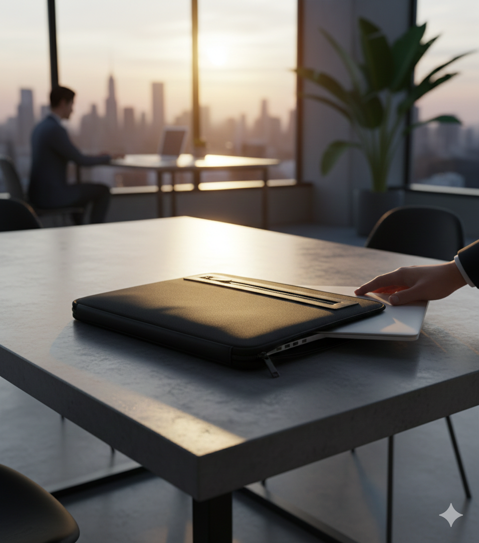 The slim profile makes it easy to carry or slip inside a bag, while the multi-zipper closure ensures that your laptop and accessories remain secure and organized.