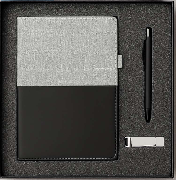 Whether for office meetings, travel, or as a thoughtful corporate gift, this black leather set delivers both class and function.