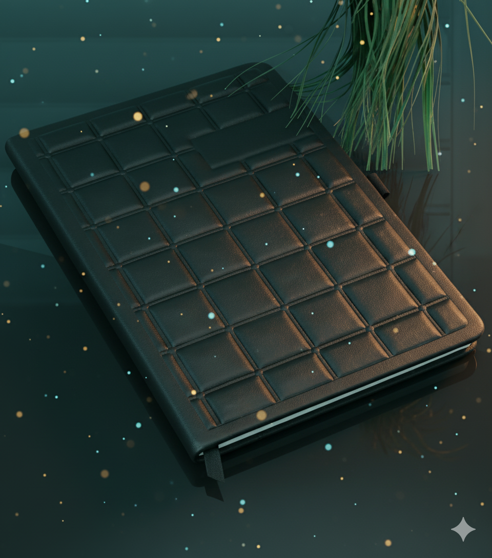 Luxury Leather Notebook with Elegant Square Pattern – Black