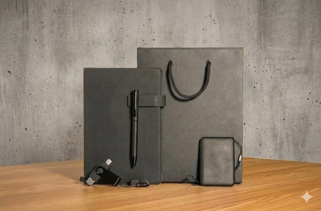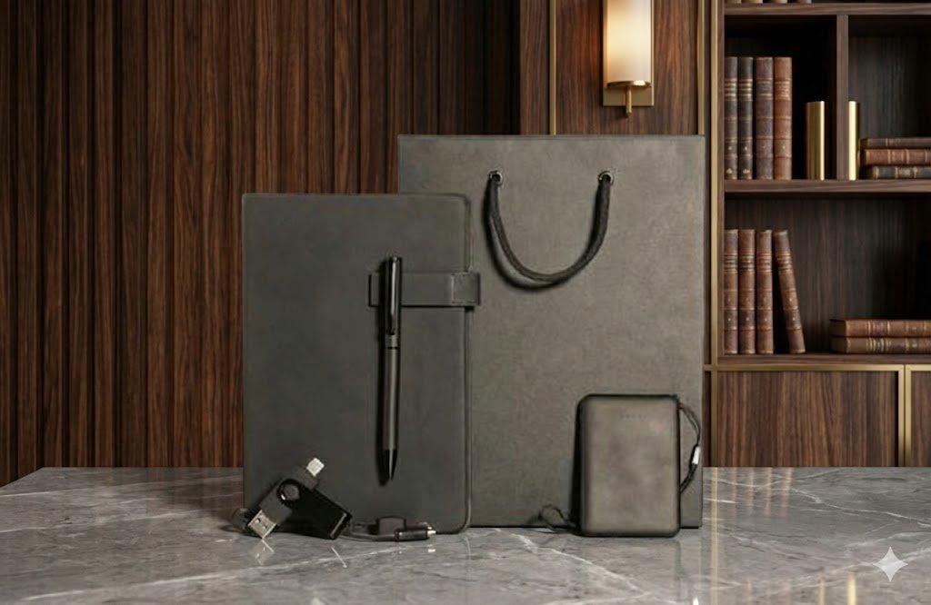 Enjoy a luxury office gift set that combines elegance with practical functionality. The set includes a premium notebook for notes, an elegant pen, a power bank for fast charging, and a USB for storing important files.