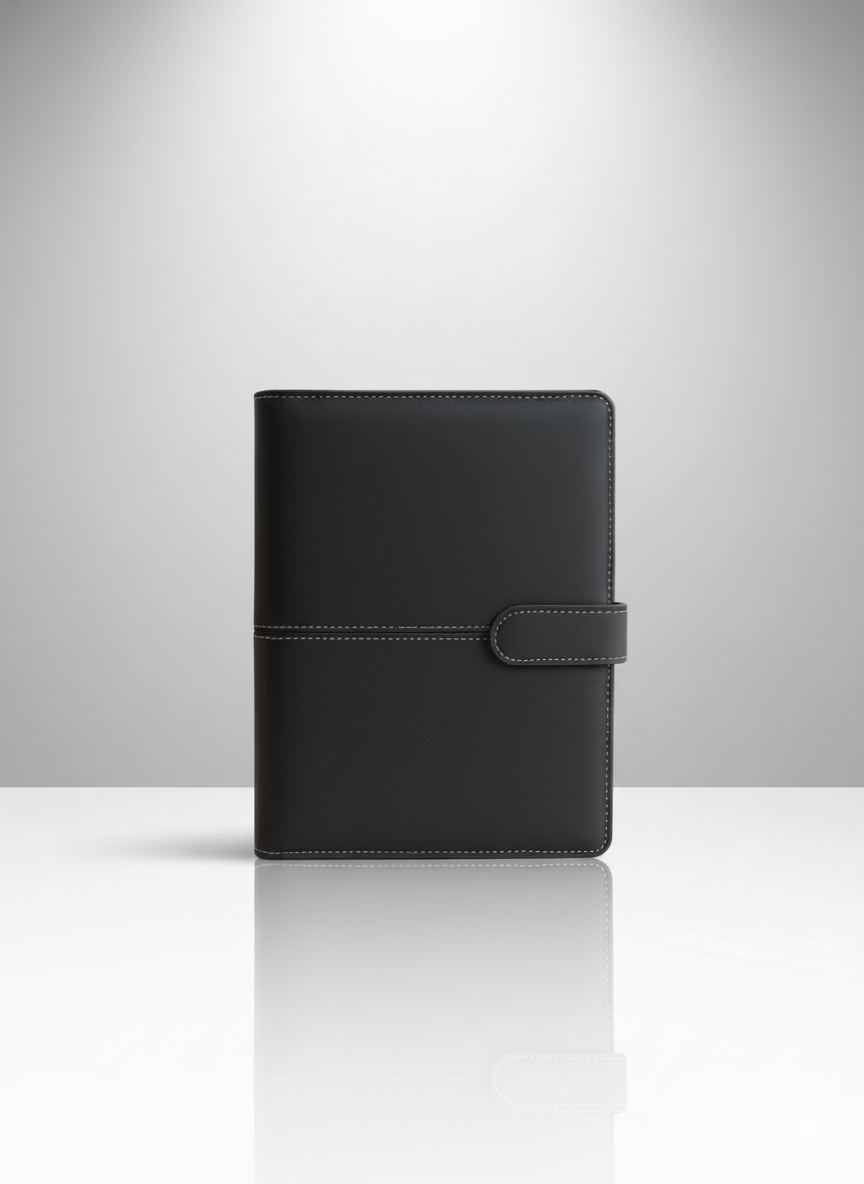 This premium leather notebook is crafted to meet the demands of daily work and study. Its protective leather cover and secure magnetic clasp keep your notes safe, while interior pockets and organizational features store cards and important slips conveniently. offering a reliable, well-organized companion for jotting ideas, planning tasks, and recording important notes.