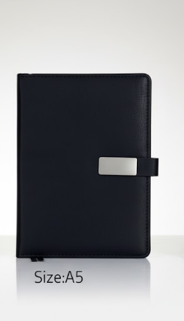 Featuring a refined leather cover with a sleek metallic clasp, this notebook offers both durability and a stylish professional appearance.