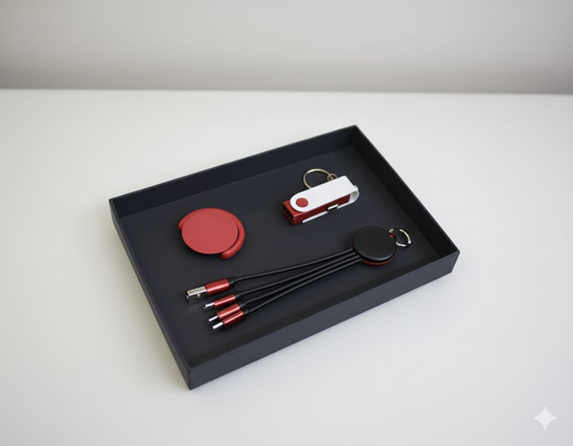 Enjoy a practical tech gift set combining style and everyday functionality. The set includes a 3-in-1 charging cable for connecting multiple devices and a Mobile Pop Socket for secure phone grip and convenient use.
