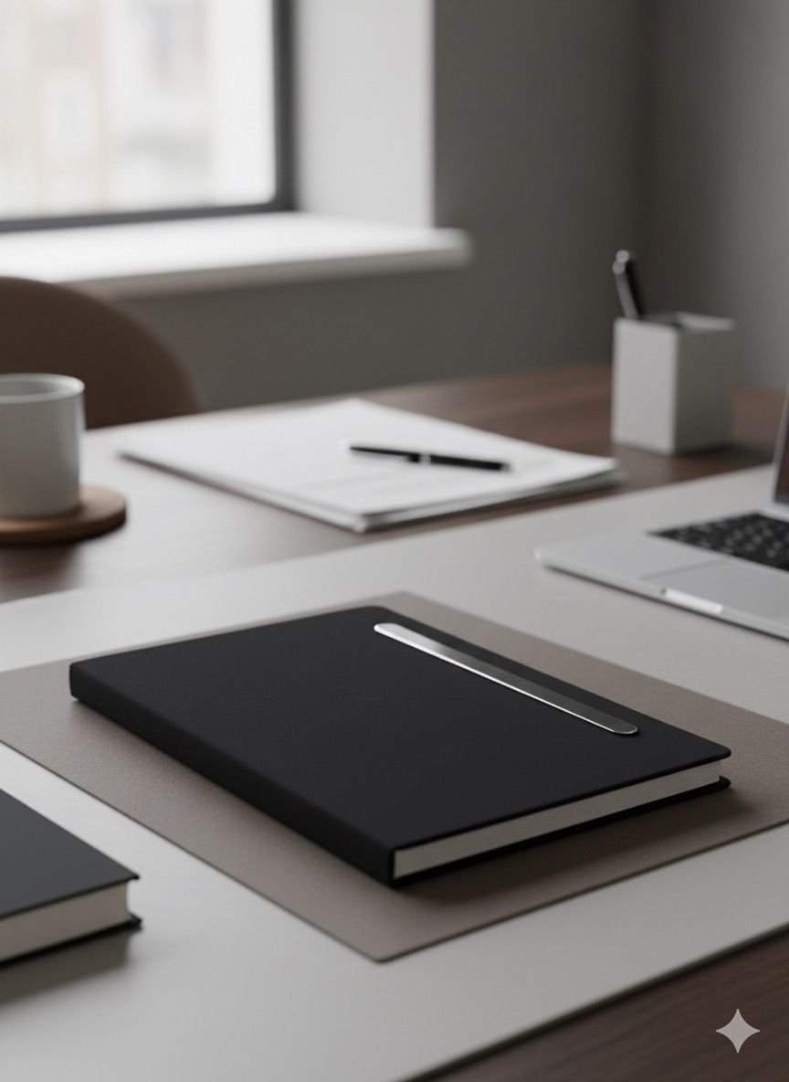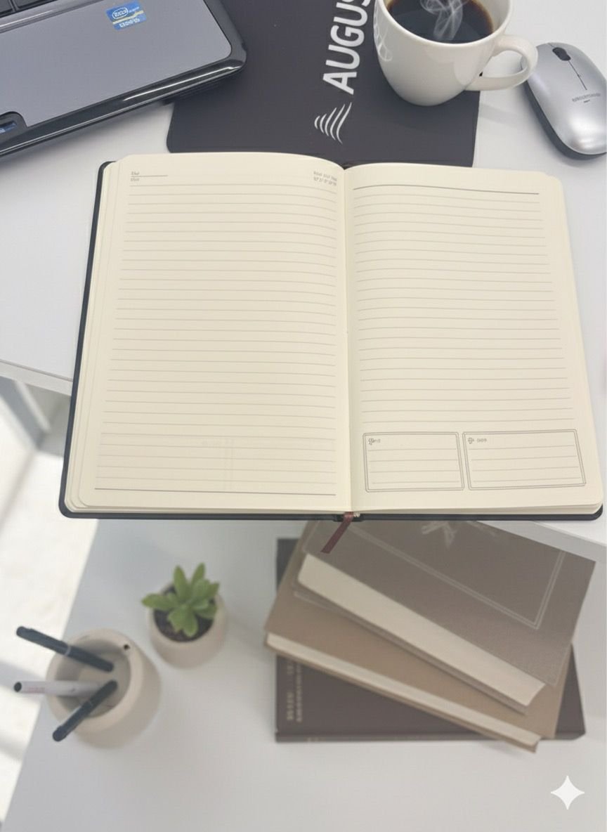 Its high-quality leather cover with refined silver detailing makes a bold statement of style and professionalism. Compact yet spacious, it provides the perfect balance for capturing meeting notes, daily tasks, creative ideas, or personal reflections.