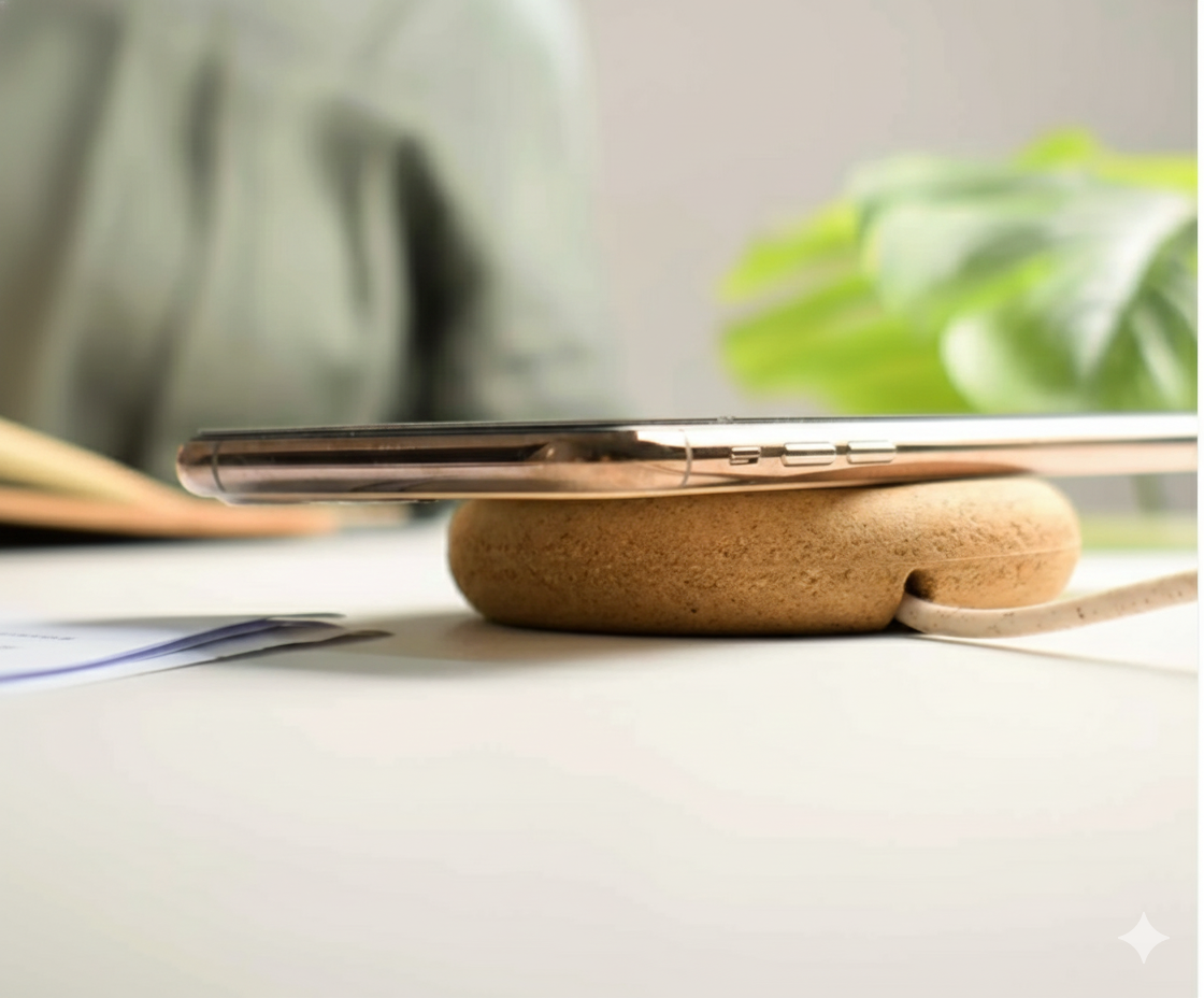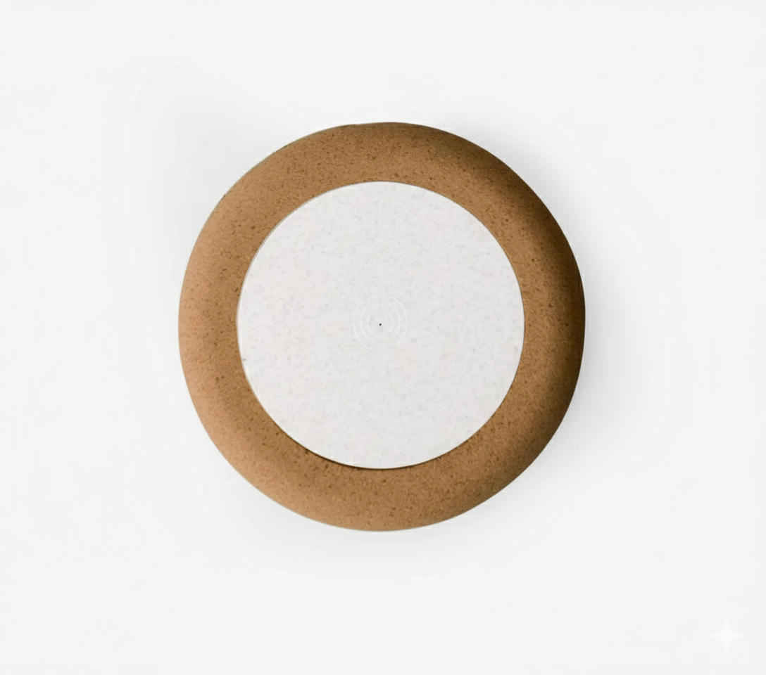 The Wheat & Cork Wireless Charger combines sustainable materials with modern wireless charging technology to deliver an elegant and eco-conscious power solution. Crafted from a unique blend of wheat straw bio-plastic and natural cork, this charger reflects a commitment to sustainability without compromising performance.